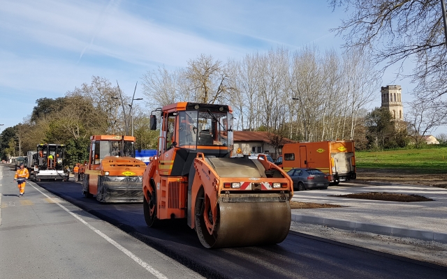 Alors que les travaux vont bientôt se terminer, quelques photos de la phase la plus spectaculaire : le revêtement de la chaussée. Merci à Emmanuel Morizet pour ses images.